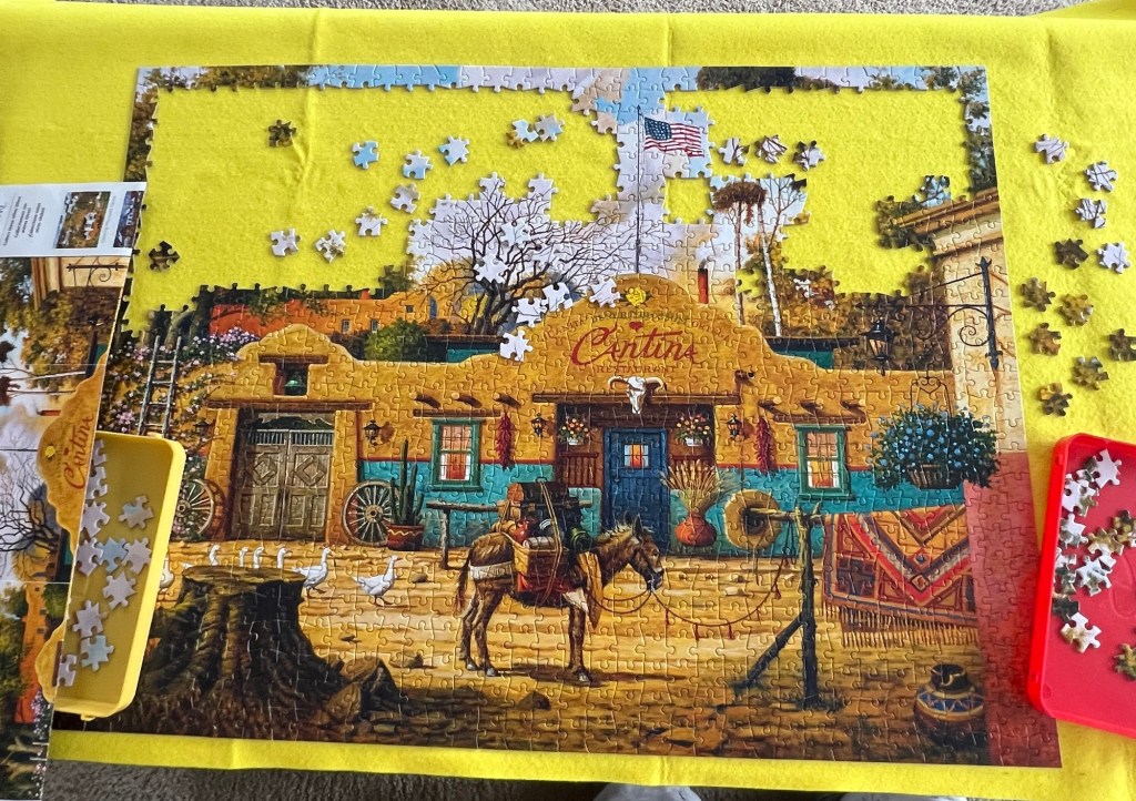 In January, I wrote about completing my first puzzle. I “got it for Christmas” in 2022 but it and the roll up pad sat for a year before our Aunt Mindy’s dedication to hers inspired me to start on mine!